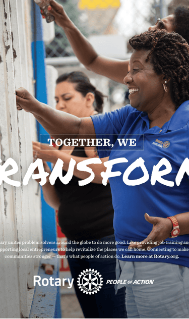 Rotary is a global network of more than 1.2 million neighbors, friends, leaders, and problem-solvers who see a world where people unite and take action to create lasting change – across the globe, in our communities, and in ourselves.